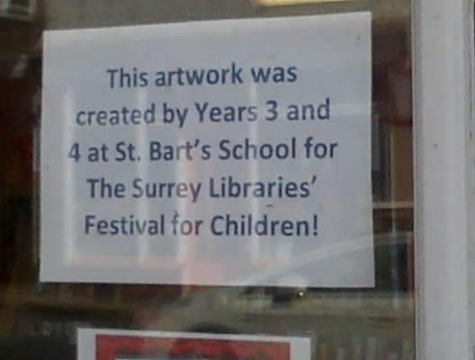 Haslemere Library summer reading challenge, prize giving. I presented Jacob Brewer and Xabi Hawkins with the prize of a free DVD voucher which they won in the prize draw after completing the Mythical Maze Summer Reading Challenge treasure hunt.Haslemere Library runs a weekly children’s book club, and half term circus skills workshop (see website).